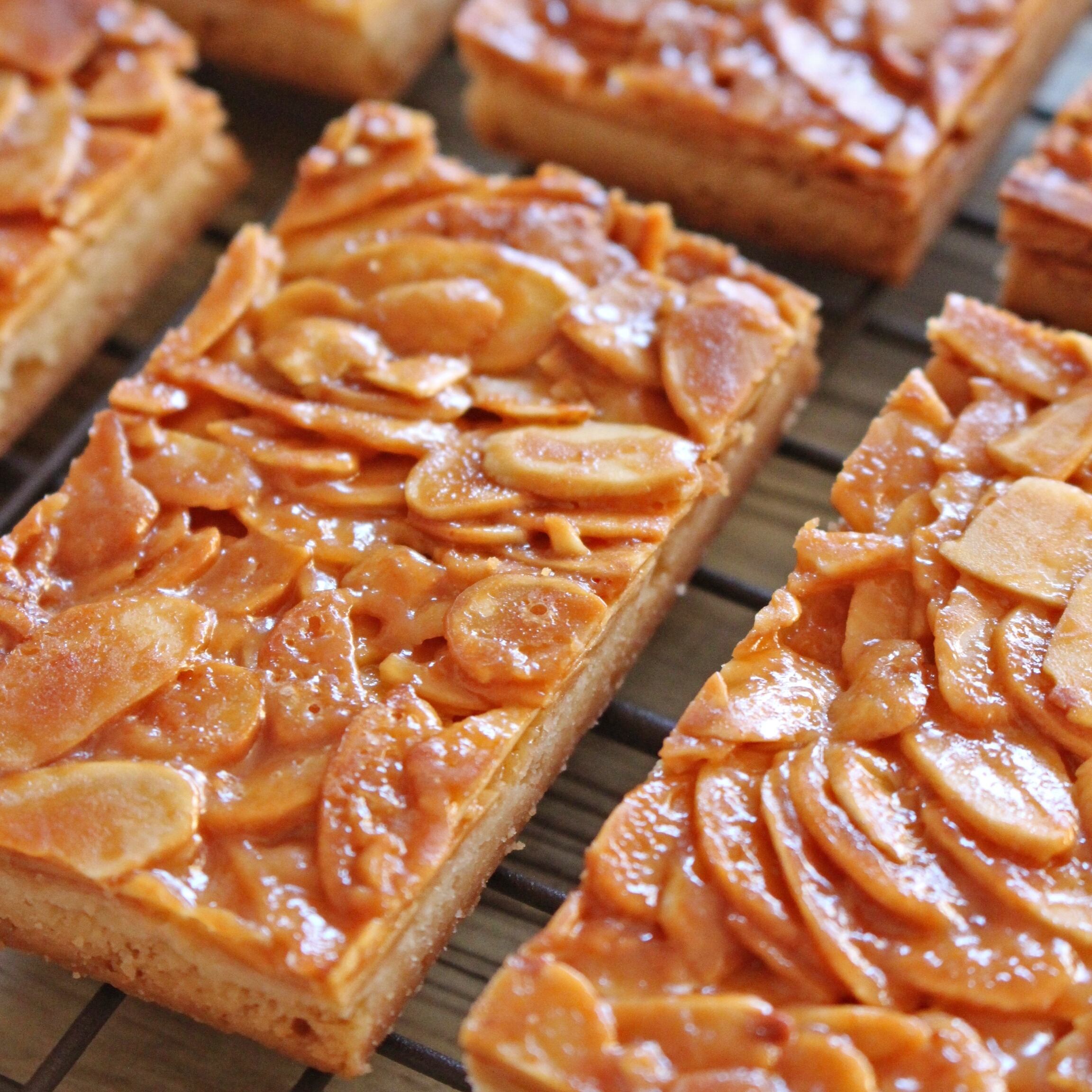 サクサクのサブレにキャラメルをまとったアーモンドをたっぷりのせて焼き上げました。
